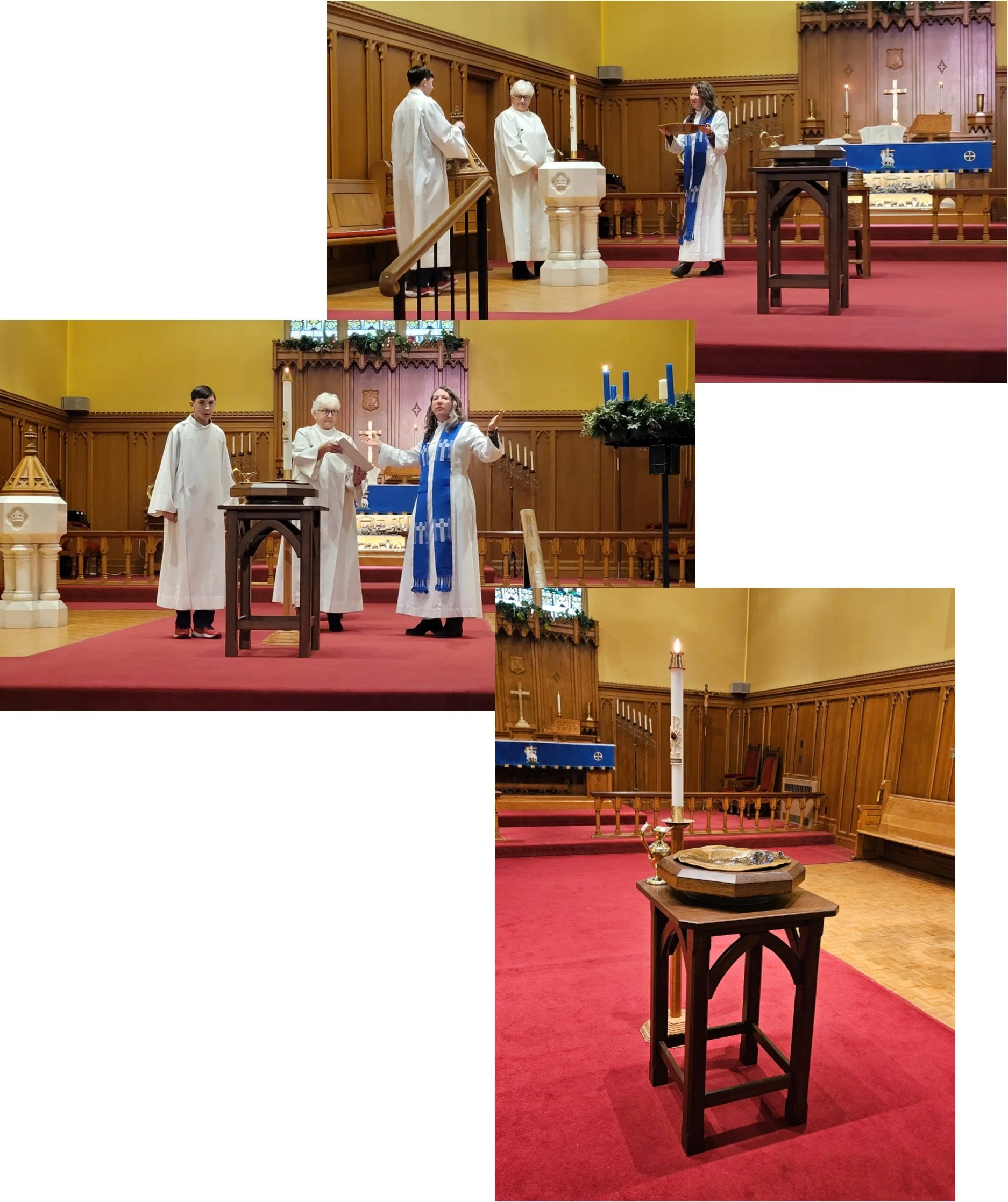 As it was in the beginning, still today your Spirit sweeps over us, your gathered community. In a time that calls for your church to be nimble, flexible, and open to change, we give you thanks for this new font. For Black Walnut, from which this font is fashioned, who has already experienced transformation from seed to sapling to tree to timber to vessel of living waters. May this font be for us a sign of the one who walks with us through the changing seasons of our communal life together.