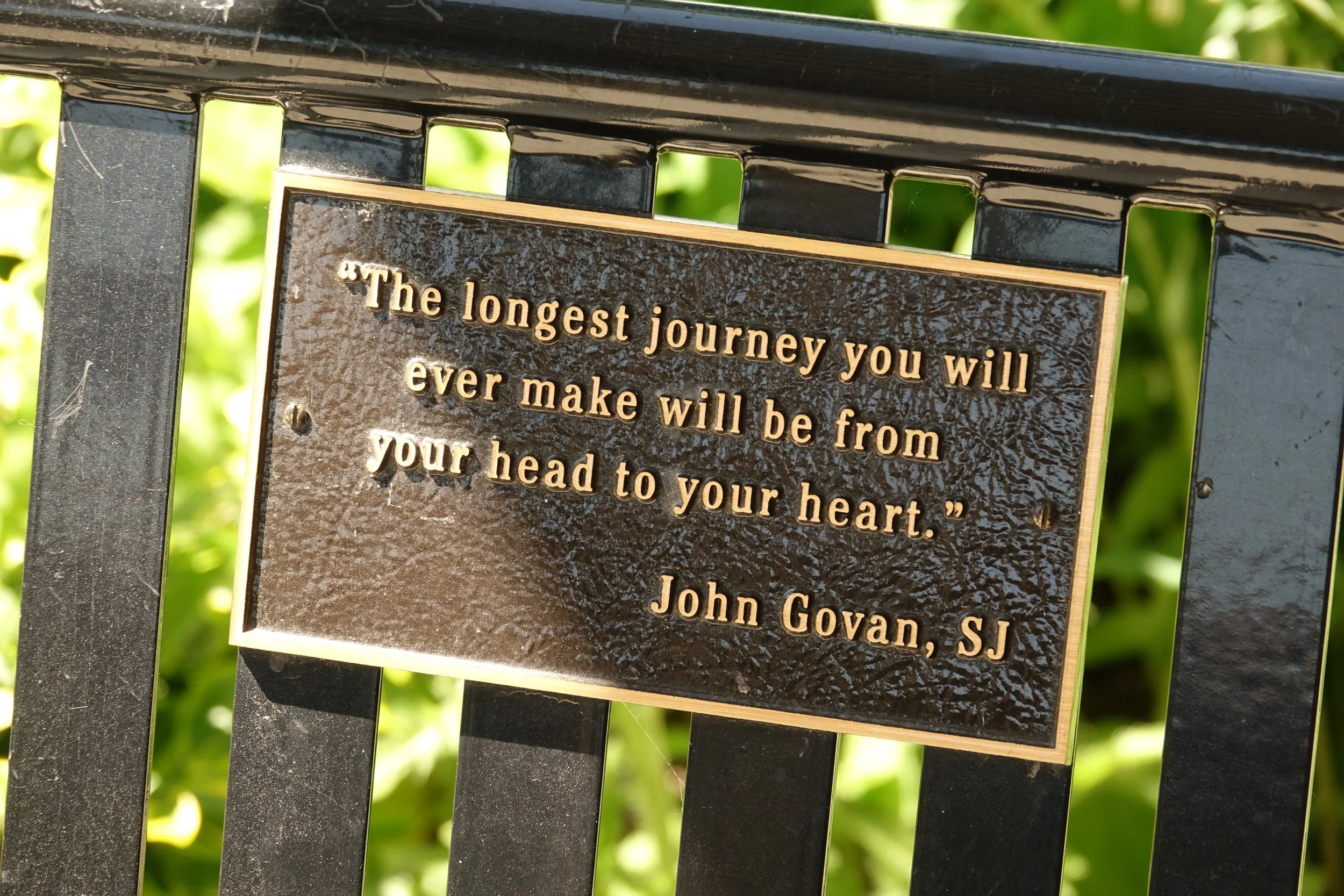 I have shared with you before that I used to work at Loyola House, the Jesuit retreat center in Guelph. At the front door of the retreat center is a bench with an inscription on it, a phrase created by one of the Jesuits that worked there for many years. The inscription reads: “The longest journey you will ever make is from your head to your heart.”